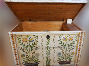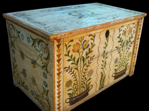 Gyűjteményünk egyik legkülönlegesebb tulipános ládájának leírását Bodnár Zsuzsanna etnográfustól idézzük: