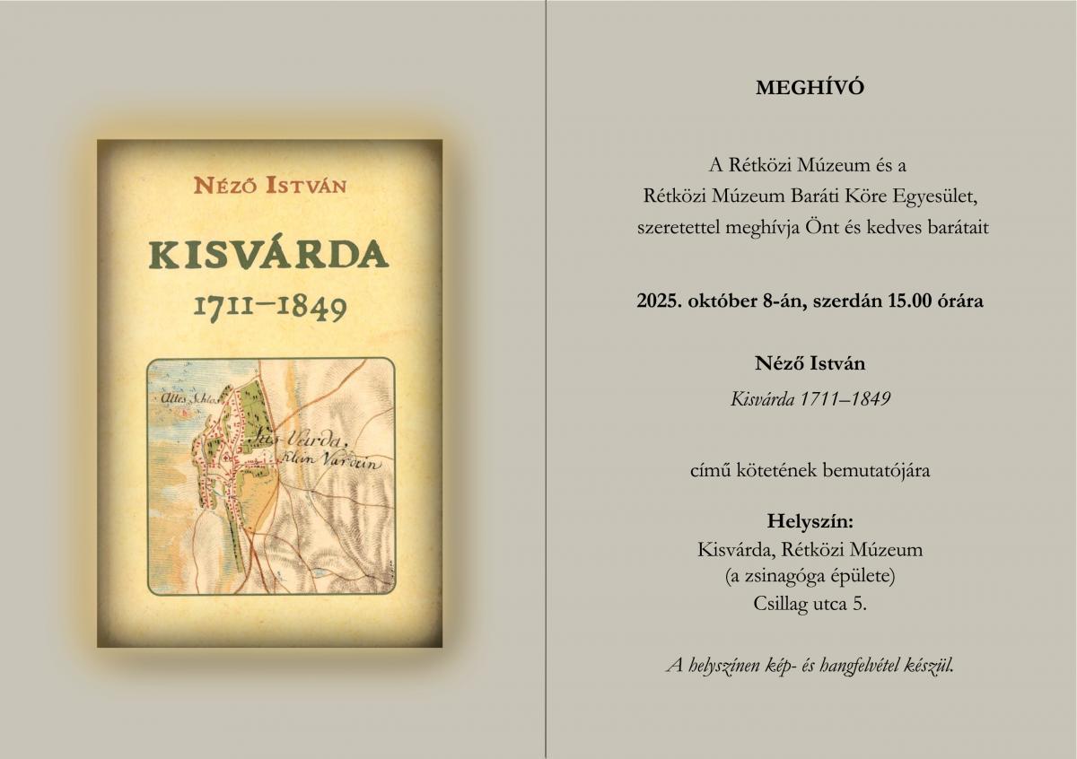 Október 8-án sikeresen lezajlott múzeumunk munkatársának, Néző Istvánnak a kötetbemutatója. Dr. Vofkori Mária igazgató bevezető szavai után a szerző vázolta a Kisvárda 1711-1849 című kötet tartalmát. A program hivatalos részét baráti beszélgetés követte.